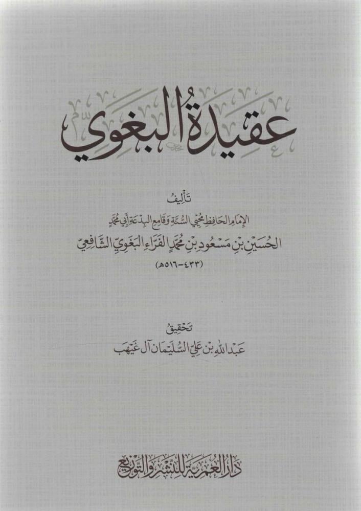 فهذه عقيدة مختصرة، للإمام المفسّر ، المحدث الفقيه، محيي السنة، أبي محمد الحسين بن مسعود الفرَّاء البغوي الشَّافعي ، صاحب التصانيف السيارة في التفسير والحديث والفقه، ضمَّنها جملة من المسائل والدلائل في باب الإيمان بالله وأسمائه وصفاته، وملائكته وكتبه ورسله، واليوم الآخر، والقدر، والرؤية، والإسراء والمعراج، والحوض، والشفاعة، والصحابة، وآل البيت، والإمامة، والجماعة والاختلاف، والإيمان والأسماء والأحكام والكرامات، وأشراط الساعة، والقبر والبعث والحشر.
