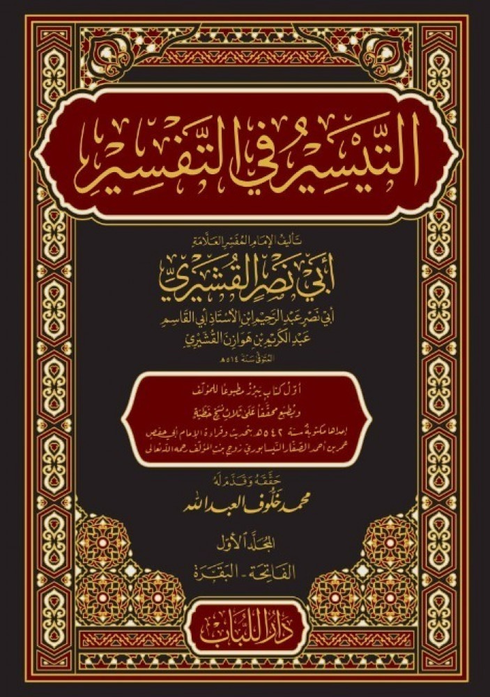 بحمدِ اللهِ وفضلهِ تمَّ اليومَ طباعةُ هذا السِّفرِ النَّفيسِ في سبعِ مجلَّداتٍ كبارٍ، للإمامِ العلَّامةِ المفسِّرِ أبي نصرٍ عبدِ الرَّحيم القشيريِّ المتوفَّى سنةَ (514 هـ)، وهو ابنُ الإمامِ الأستاذِ أبي القاسمِ القشيريِّ.
