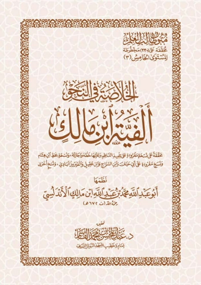 ألفية ابن مالك والمسماة أيضًا بـ «الخلاصة» هي متن شعري من نظم الإمام محمد بن عبد الله بن مالك الطائي، من أهم المنظومات النحوية واللغوية، لما حظيت به من عناية العلماء والأدباء الذين انْبَرَوْا للتعليق عليها، بالشروح والحواشي، ومتن اختصرها من منظومته الكبرى «الكافية الشافية»، والذي جمع فيه خلاصة علمي النحو والتصريف، في أرجوزة ظريفة، مع الإشارة إلى مذاهب العلماء، وبيان ما يختاره من الآراء، أحيانا وقد كثر إقبال العلماء على هذا الكتاب من بين كتبه بنوع خاص، حتى طويت مصنفات أئمة النحو من قبله، ولم ينتفع من جاء بعده بأن يحاكوه أو يدعوا أنهم يزيدون عليه وينتصفون منه، ولو لم يشر في خطبتهِ إلى ألفية ابن معطي لما ذكره الناس، ولا عرفوه.