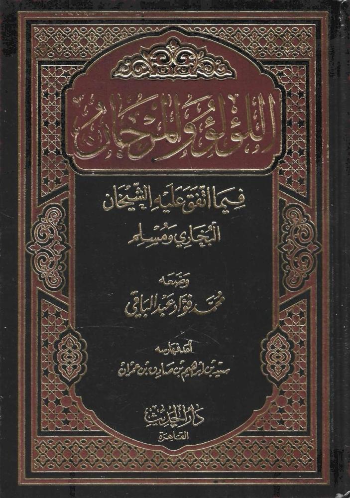 أما بعد ـ فهذا كتاب "اللؤلؤ والمرجان، فيما اتفق عليه الشيخان" إماما المحدثين: أبو عبد الله محمد بن إسماعيل بن إبراهيم بن المغيرة بن بَرْدِزْبَه البخاري الجُعْفِيّ، المولود عام 194هـ. والمتوفى عام 256 هـ. وأبو الحسين مسلم بن الحجاج بن مسلم القشيري النيسابوري، المولود عام 204هـ.والمتوفى عام 261هـ. أشار بوضعه، الناشر والقائم بطبعه: السيد محمد الحلبي، مدير دار إحياء الكتب العربية.