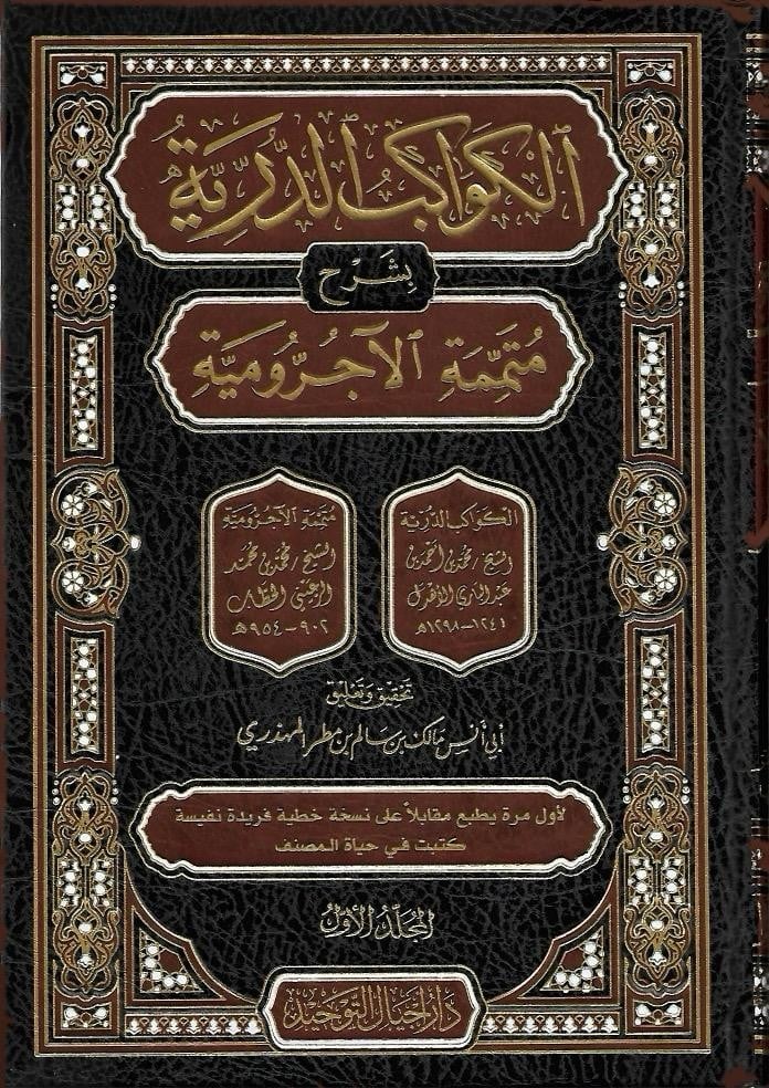 كتاب ” الكواكب الدرية شرح متممة الآجرومية 1/2 ” للشيخ أبي الفيض محمد بن أحمد بن عبد الباري الأهدل الحُسيني التِّهامي، وهو كتاب فيه فوائد نحوية كثيرة، مع دقة في التقسيم والتبويب، وقد تميزت هذه الطبعة بتحقيق مميز ونفيس، بذل فيه المحقق الوقت الكثير لإخراج النص الصحيح للكتاب، وتوثيق الآيات والأحاديث والأقوال والنقولات، وترجمة الأعلام، والتعريف بالكتب، مع الاعتناء بالشواهد الشعرية تخريجاً وإعراباً، مع حواش فيها الكثير من الفوائد البديعة العالية، ومئات من التعاليق النافعة، مع تشجير جميع مسائل ” متممة الآجرومية “.