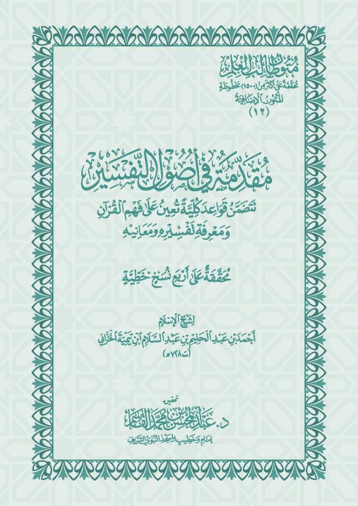 وقد وضع شيخ الإسلام أحمد بنُ عبد الحليم بنِ عبد السلام ابنِ تيميَّة رحمه اللَّه قواعد كلِّيَّةً تُعين على فهم القرآن الكريم ومعرفة تفسيره ومعانيه، اشتهرت بـ«مُقدِّمة في أُصول التَّفسير»، ولأهميتها حقَّقتُها على أربع نُسَخٍ خطِّيَّة، لتظهر كما وضعها مؤلفها رحمه اللَّه.