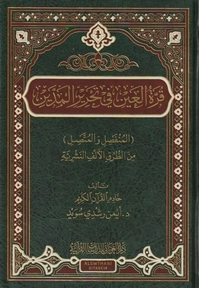 قُرَّة العَين في تَحريرِ المَدَّينِ لأوَّلِ مرَّةٍ منذُ ستِّ مئةِ سنةٍ كتابٌ يَجمَعُ المَدَّينِ من ستٍّ وأربعينَ كِتاباً في القراءاتِ القرآنيةِ تَحقِيقاً وتصحِيحًا، وبَيَاناً لِطُرُقِ الأَلْفِ النَّشْرِيَّةِ المُعتمَدَةِ طَرِيقاً طَرِيقاً، ويُبيِّنُ مُرادَ مُصَنِّفي كُتُبِ القِراءاتِ مِن مُصطلحاتِ المدِّ: كالتمكينِ والإشباعِ، والبَتْرِ، والتعبيرِ بِـ: أقلِّ الناسِ مدّاً، وبيانِ المِقياسِ المُتَّبعِ في حِسابِ المُدُودِ وعَلاقتِهِ بتقديرِها بالأَلِفاتِ، ويُحقِّقُ ويُقوِّمُ كذلك الخَبرَ الواردَ عن الإمامِ حَمزةَ في تفاوتِ مَراتِبِ المُتَّصِلِ ، والذي بَقِيَ يُتَناقَلُ مع الخطأِ الذي فيه أكثرَ من ألفِ سنةٍ، ويَستَدْرِكُ ما ذَكَرَهُ الإمامُ الجزريُّ في بابِ المدِّ في مواضعَ متعدِّدةٍ بَلَغَتْ سبْعًا وعشرينَ استِدْرَاكًا ، ويُلخِّصُ في الخاتمةِ مقاديرَ المَدَّينِ للطُّرُقِ الأَلْفِ النشريةِ. تأليف الدكتور أيمن رشدي سويد