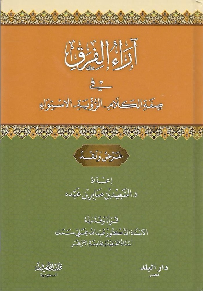 بين أيدينا كتاب فضيلة الشيخ الدكتور السعيد صابر عبده وفقه الله، عن آراء الفرق في صفة الكلام - والرؤية - والاستواء، وقد بذل فيه الشيخ جهدا كبيرا يدركه أهل الاختصاص في علم الفرق والمقالات، وقد أشفقت على الشيخ -وهو المتخصص في هذا المجال -تعاطيه مع آراء الفرق ومناقشتهم فيها؛ لأن مثل هذه المناقشات الجدلية تأخذنا بعيدا عن مقاصد الشريعة وهدايات القرآن وحلاوة الإيمان .