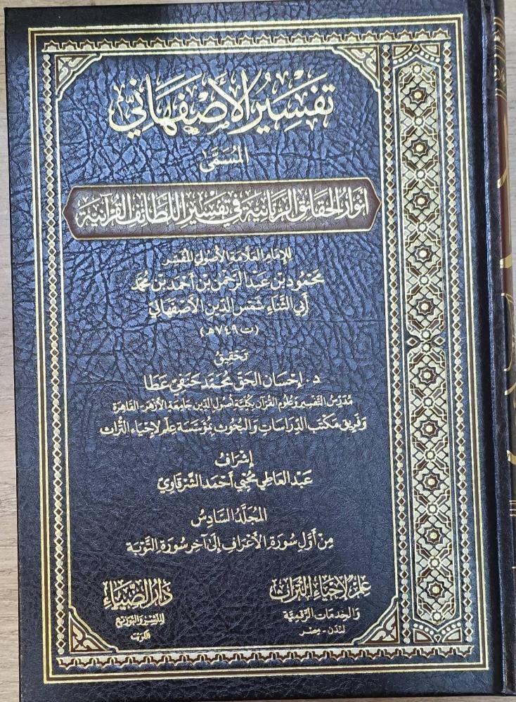 صدر حديثًا هذا العام ١٤٤٦ تفسير الأصفهاني (أنوار الحقائق الربانية فى تفسير اللطائف القرآنية) ، تفسير كبير جمع فيه بين الكشاف ومفاتيح الغيب للرازي جمعًا حسنًا بعبارة وجيزة مع زيادات واعتراضات ، وقال السبكي فى طبقاته (484):-(شرع فى تفسير كبير ولم يتمه أوقفنى على بعضه) ، والكتاب موسوعة جامع على نهج التفسير التحليلى المعتاد إلا أنه تميز بكثرة المناقشات والإعتراضات فى النحو والعقيدة والاصول وفيه خلل عقدي وتأويل وتصوف وفلسفة ، ولما قدم أبو الثناء الأصفهاني دمشق قال ابن تيمية لأصحابه:- «اسكتوا حتى نسمع كلام هذا الفاضل الذي ما دخل البلاد مثله»