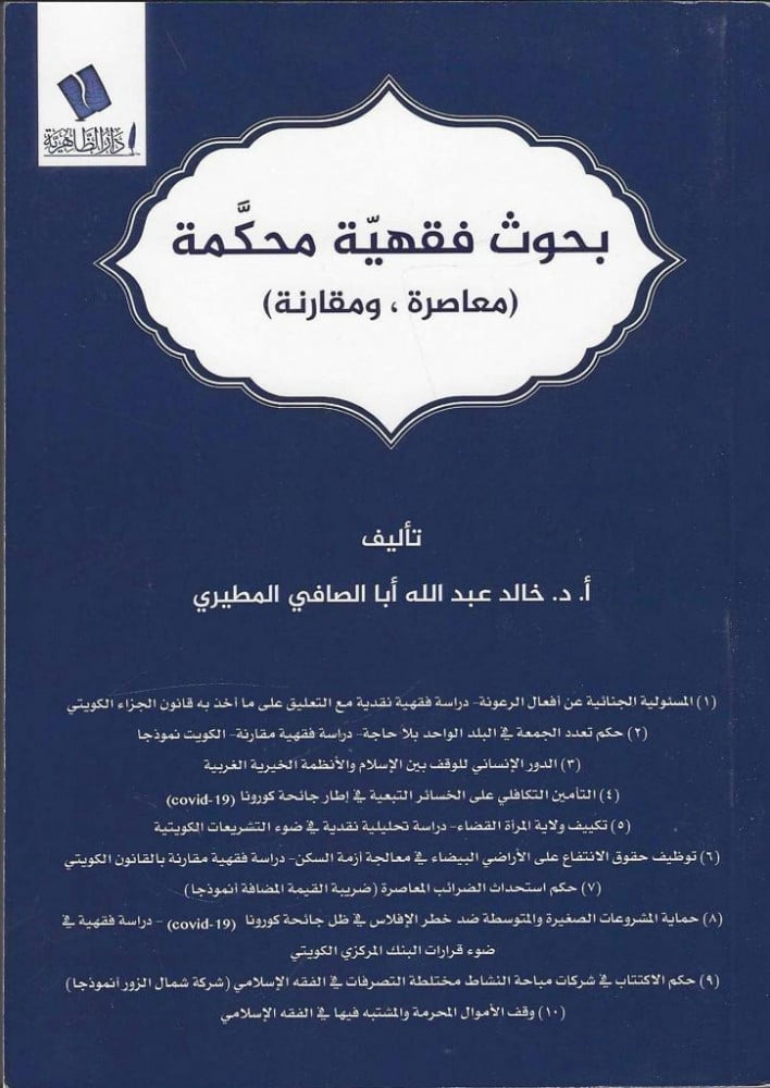 موضوعها يدور حول قضايا فقهية معاصرة وتشتمل على تكييفات فقهية ومناقشات يستفيد منها طلاب الدراسات العليا والتخصصات الشرعية والقانونية