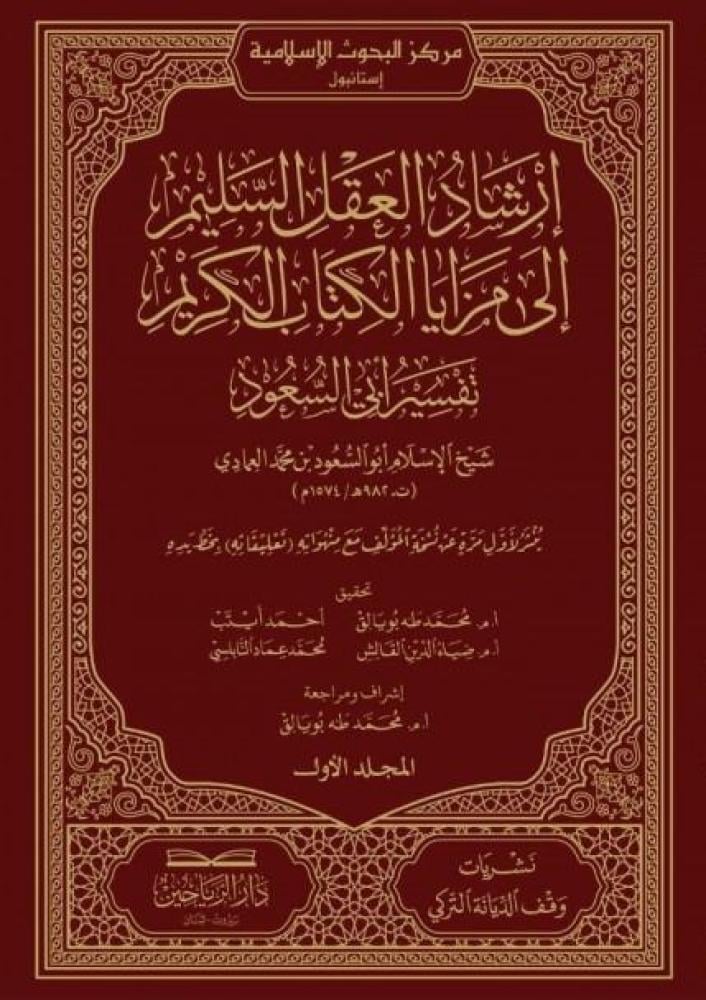 إن كتاب إرشاد العقل السليم إلى مزايا الكتاب الكريم هو تفسير للقرآن الكريم لأبي السعود أفندي المتوفي 982هـ الذي تقلد منصب مشيخة الإسلام لمدّة ثلاثين عامًا، في عصرٍ شهدت فيه الدولة العثمانيّة أوج قوّتها.