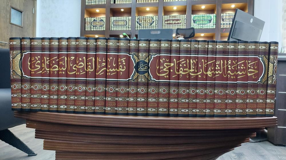 ثمَّ قُمْنا بتَخريجِ وتَوثيقِ كُلِّ ما في هذه الحاشيةِ ممَّا استَطَعْنا الوُصولَ إلَيه مِن مَصادرِ القِراءاتِ والأَشعارِ، والأحاديثِ والآثارِ، وتَوثيقِ نُقولِ الخَفاجيِّ مِن بُطونِ الكتُبِ والمَعاجمِ الَّتي نقَل عنها، ثمَّ إنَّنا لا نَكتفِي في الغالبِ بتَوثيقِ المَصدرِ الَّذي نقَلَ عنه فقط، بل ما تضمَّنَه ذلك النَّقْلُ مِن نُقولٍ أُخرَى داخِلَه؛ كأَنْ يَنقُلَ الخَفاجيُّ عن السَّمينِ الحلَبيِّ، وعندَ السَّمينِ نُقولٌ أُخرَى عَن سِيبويهِ وأبي عليٍّ الفارسيِّ والفَرَّاءِ وأبي حَيَّانَ وغيرِهم؛ فإنَّنا نُوثِّقُ تلكَ النُّقولَ أيضًا ولا نُغفِلُها. فكانَ هذا أيضًا مُشتمِلًا على آلافٍ مِن تَوثيقِ القِراءاتِ والحَديثِ والشِّعْرِ والكلِماتِ المُعجميَّةِ وغيرِها.