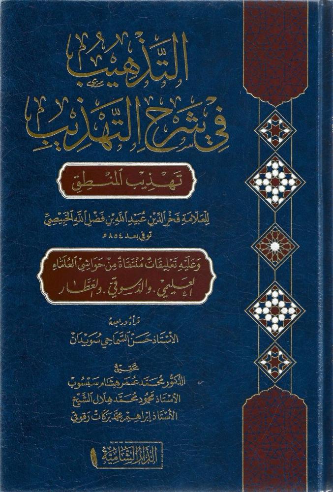التذهيب في شرح التهذيب للخبيصي، شرح فخر الدين عبيد الله الخبيصي على تهذيب المنطق لسعد الدين التفتازاني، وعليه تعليقات منتقاة من حواشي العليمي والدسوقي والعطار، تحقيق كل من د. محمد عمر سبسوب و أ. محمود محمد هلال الشيخ وأ. إبراهيم محمد رقوقي، ط. الدار الشامية، طبعة فاخرة، ملونة، ورق شموا.
