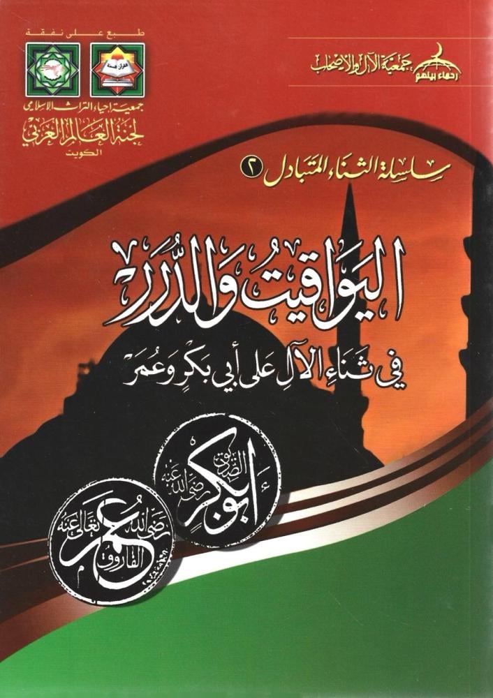 اليواقيت والدرر في ثناء الآل على أبي بكر وعمر: يُبيِّن هذا الكتاب فضائل الشيخين: الصديق والفاروق - رضي الله عنهما -، ويتطرَّق على وجه الخصوص إلى بيان علاقة المودة والمحبة التي كانت تربط بين آل بيت النبي - صلى الله عليه وسلم - وبينهما - رضي الله عنهم أجمعين -.