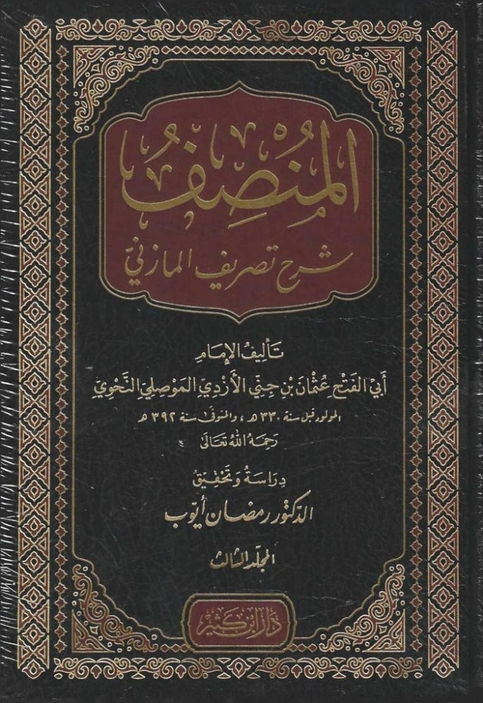 يُعَدُّ الكتابُ (المنصفُ) ثمرةَ تضافُر جهود عالِمَيْنِ جليلين سَعَيَا إلى خدمة هذا اللسان العربي في سعيهما إلى خدمة كتاب الله، والنَّاظر في الكتاب يَسْتَشِفُّ منه المحلَّةَ العالية التي تبوَّأها بين مصنَّفات فَنِّه، حتى أُغرِيَ به ابنُ جنِّي، وعَلِقَ قلبُه، فَنَذَر له نفسَه ووقتَه، وسعى إلى شرحه؛ فكان الشَّرحَ الفَذَّ لتصريف أبي عثمان المازنيّ.