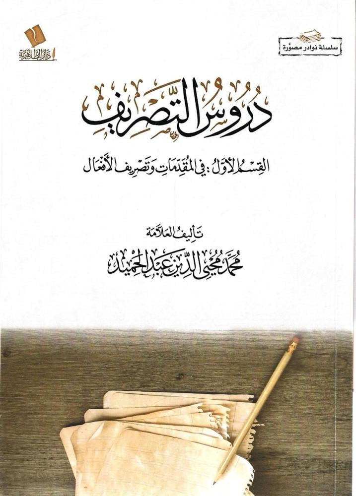 هذا كتاب دروس التصريف، عملته لأبنائي طلبة كلية اللغة العربية حين وجدت الحاجة ماسة إلى كتاب يجمع ما تفرق في كتب الفن مع سهولة العبارة ووضوح الغرض مما يلتئم مع روح التطور الحديث.