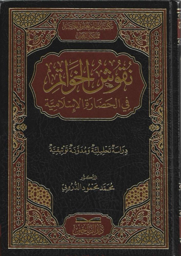 وقَدْ شَدَّ انْتِباهِي- فِي أَثْناءِ نَفْضِ مِئاتِ المَظانِّ التّارِيْخِيَّةِ والأَدَبِيَّة؛ فَتْشاً عَنْ تَوْقِيْعاتٍ سَقَطَتْ مِنْ يَدِ الدَّهْرِ- تَناثُرُ طائِفَةٍ كَبِيْرَةٍ مِنْ نُقُوشِ الخَواتِمِ العَرَبِيَّةِ الإِسْلامِيَّةِ فِي بُطُونِ تِلْكَ المَظانّ، فَنالَنِي إِعْجابٌ شَدِيْدٌ بِهاتِيْكَ الكِتاباتِ المُوجَزَةِ المَرْقُونَةِ عَلى تِلْكَ الخَواتِم، وزادَ عُجْبِي بِما تَلَبَّسَتْهُ تِلْكَ العِباراتُ مِنْ ثَوْبِ الحِكْمَةِ العامِرَة، وإِرْسالِ وَفِيْرِ المَعانِي فِي يَسِيْرِ الأَلْفاظ. وأَدْرَكْتُ- مُنْذُ الوَهْلَةِ الأُولى- أَنَّ أَصْحابَ النُّقُوشِ كانُوا يُحَمِّلُونَها صَفْوَةَ أَفْكارِهِم، وخُلاصَةَ رُؤاهُم فِي الحَياة.