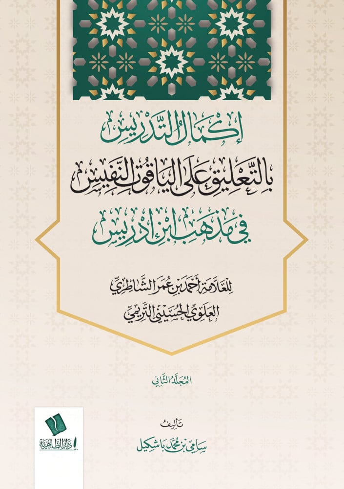 المؤلف في سطور هذا هو الإكمالُ الأَوَّلُ مِنْ إكمالاتي التَّقرِيبِيَّة لمشهور كتب فروع الشَّافِعِيَّة التَّعلِيمِيَّة، والتي قصدي منها تقريب هذه الكُتُب الشَّافِعِيَّة التَّعلِيمِيَّة لَدَى دارسي عصرنا هذا مِنْ خِلَالِ عَمَلِ عِدَّة أشياء عليها يَحتَاجُ إليها الدَّارسُ والمدرِّسُ في الدَّرس غالباً، وهي: 1- التَّعرِيفُ بالمؤلِّف والمُؤَلَّف تعريفاً يستطيعُ به الدَّارس أَنْ يكون على تَصُوُّرٍ طَيِّبٍ بحال الكتاب الذي يَدرُسُهُ وحالِ مُؤَلِّفِه. 2- تَنسِيقُ فَقَرَاتِ الكتاب تَنسِيقاً يُسَاعِدُ على فَهمِه فَهْماً صحيحاً. 3- وَضَعُ عَنَاوِينَ للمسائل الَّتي اشتمل عليها الكتاب بحيث تَتَمَيَّزُ كُلُّ مسألةٍ عن الأُخرَى. 4- التَّدليلُ على مسائل الكتاب بِمُختَلَفِ الأَدَلَّة الشَّرعيَّة من كتابٍ وسُنَّةٍ وإجماعٍ وقياسٍ وتعليلٍ. 5- تصحيحُ ما وَقَعَ في الكتاب من أخطاء، لا سيَّما ما يَتَعَلَّقُ باعتماد غير المعتمد في المذهب. 6- إيضاحُ ما انْبَهَمَ مِنَ الكتاب. 7- تَتمِيمُ الكتاب بما تدعو الحاجةُ إليهِ مِنْ مُهِمَّات الفوائدِ والقواعدِ والضَّوابطِ والحواصلِ وغيرِها. وبهذا يُعلَم أنَّ كُلَّ تعليقي على (الياقوت) من صُنعِي ما عدا التَّعليقات الَّتي هي مِنْ قَبِيلِ بيان محترزات المتن فقد استَفَدتُ في أكثرها مِنْ حاشية (الياقوت) نفسه؛ لأنَّ صاحبَ الياقوت عَمِلَ على ياقوته حاشيةً بيَّنَ بها في غالبها محترزات القيود المذكورة في صُلْب ياقوته. هذا.. وقد التزمتُ في جميعِ التَّعلِيقِ المذهبَ الشَّافِعِيَّ لا غير؛ إِذِ غايةُ مقصودي منه ومِنْ أَصلِه المُعَلَّقِ عليه استخلاصُ زُبدةٍ نفيسةٍ مِنَ المتنِ والتَّعلِيقِ على مذهب ابن إدريس، وذلك لا يُنَاسِبُهُ الاعتناءُ بالخلاف المذهبي، فَضلاً عَنِ الخلاف العالي. ولمَّا كان كذلك سَمَّيتُهُ (إِكمَالَ التَّدرِيس بِالتَّعلِيقِ عَلَىْ اليَاقُوْتِ النَّفِيْس فيْ مَذْهَبِ ابْنِ إِدْرِيْس) رجاءَ أنْ يَكمُلَ به دَرسُ الياقوت النَّفيس، فَيَسعَدَ به الدَّارِسُ والمُدَرِّس.