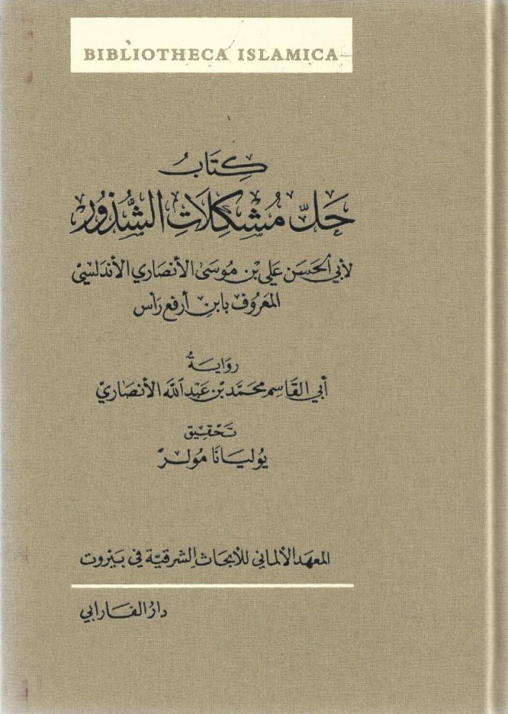 وقد ألف المؤلف ابن أرفع رأس أول شرح لكتاب "شذور الذهب" بنفسه. ونقله تلميذه أبو القاسم محمد بن. عبد الله الأنصاري، بعنوان "كتاب حل مشاكل الشذور"، وهو موجود في 31 مخطوطة على الأقل، أُخذت منها 27 مخطوطة في الاعتبار في هذه الطبعة.