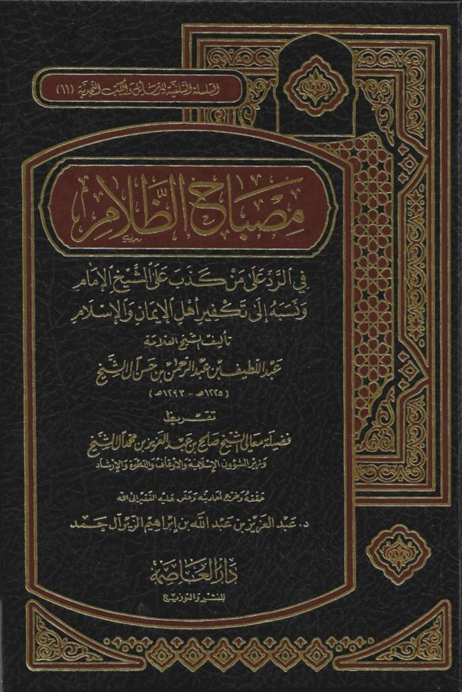 مصباح الظلام في الرد على من كذب الشيخ الإمام ونسبه إلى تكفير أهل الإيمان والإسلام: هذا الكتاب يعد ضمن سلسلة من الردود التي سطرها علماء الدعوة النجدية في الذب عن عقيدة الشيخ محمد – رحمه اللّه – ودعوته الإصلاحية، وهو رده على مزاعم عثمان بن منصور حين ألَّف كتابه المبتور جلاء الغمَّة عن تكفير هذه الأمة الذي نافح فيه عن عبَّاد القبور، وذكر فيه أن الشيخ محمد –رحمه الله– أتى بعظائم الأمور، فكفَّر كل من خالفه على مر الدهور.