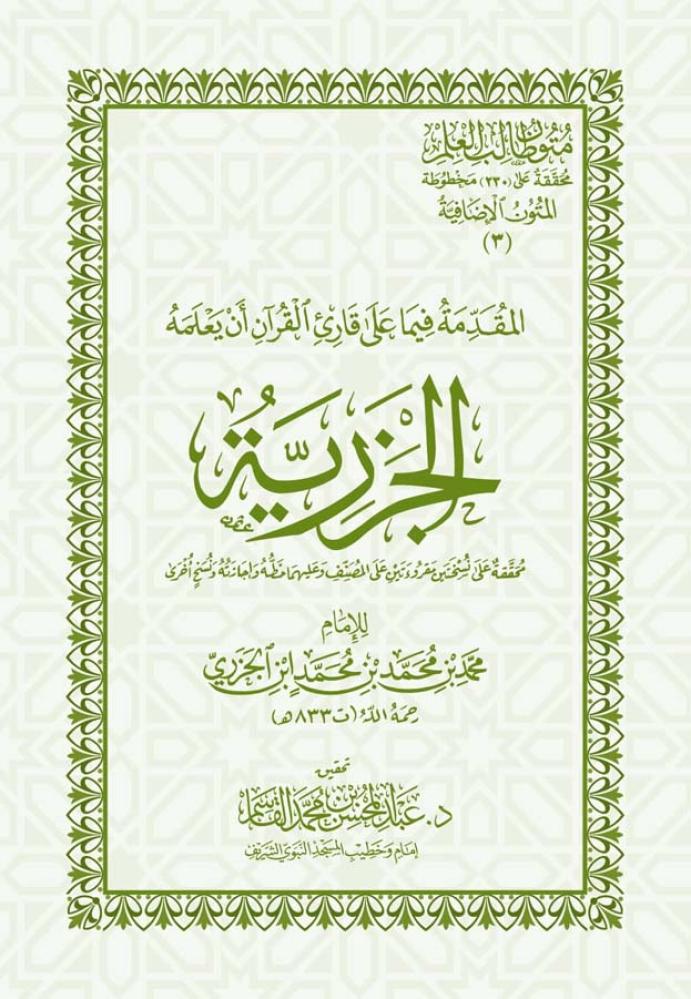 منظومةُ «المقدمةُ فيما يجبُ على قارئِ القرآنِ أنْ يعلمَه» منْ نظمِ إمامِ القرّاءِ وحُجةِ المقرِئينَ أبي الخيرِ محمدِ ابنِ الجزَريِّ، قُدِّمتْ لأهلِ القرآنِ محقَّقةً مصحَّحةً وَفْقَ قواعدَ إخراجِ النصوصِ، وقدْ رجعَ المحقِّقُ في تصحيحِ النصِّ إلى عدَّةِ نسخٍ خطيةٍ له.