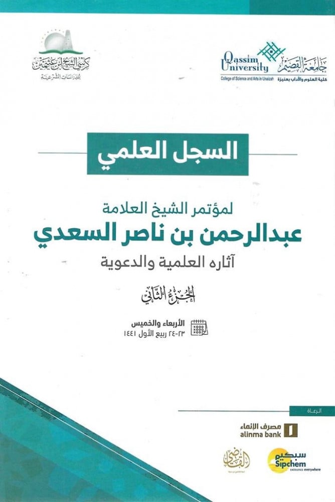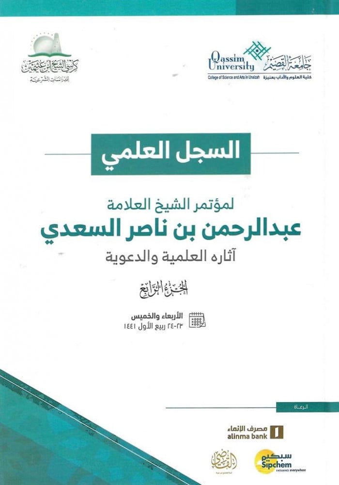 لذا فقد قامت جامعةُ القصيمِ مشكورةً ممثَّلةً في كليَّةِ العلومِ والآدابِ، وبالتعاونِ مع كُرسيِّ الشيخِ ابنِ عُثَيمين للدِّراساتِ الشَّرعيَّةِ؛ بتنظيمِ مؤتمرٍ يُلقي الضوءَ على جوانِبَ من سيرةِ هذا العالمِ، وإسهاماتِه العِلميَّةِ، وكان المؤتمرُ بعنوان: (الشيخُ العلَّامةُ عبدُ الرَّحمنِ بنُ ناصرٍ السعديُّ - آثارُه العِلميَّةُ والدَّعَويةُ) يهدفُ المؤتمَرُ إلى تناوُلِ جهودِ الشَّيخِ رحمه الله، وتسليطِ الضَّوءِ على تراثِه العِلميِّ.