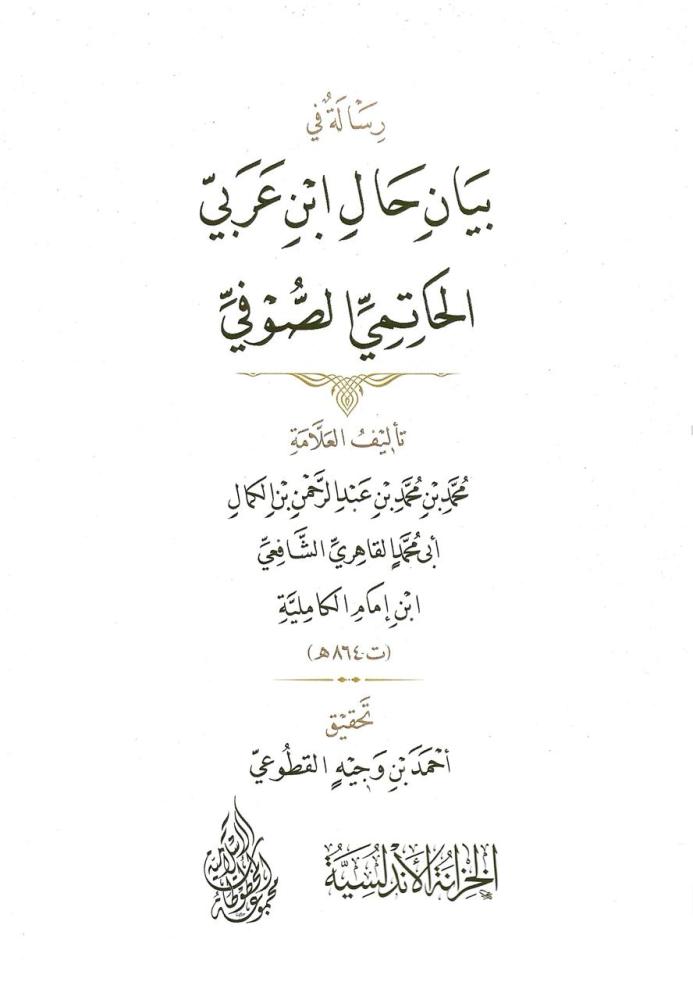 رسالة في بيان حال ابن عربي الحاتمي الصوفي - محمد عبدالرحمن الشافعي