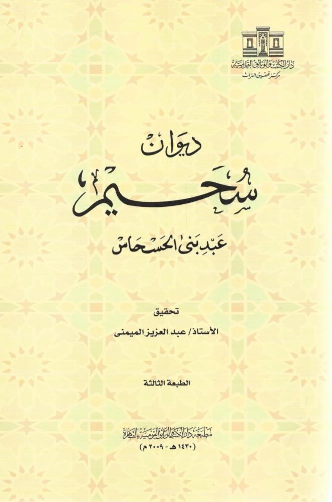 مجموعة شعرية تُنسب إلى الشاعر سحيم عبد بني الحسحاس، وهو شاعر عربي من العصر الجاهلي، معروف بشعره الذي يعكس الحياة البدوية والحكمة والفخر بالقبيلة. الديوان يحتوي على قصائد متنوعة تغطي مواضيع مثل الفخر، الحكمة، الغزل، والوصف.